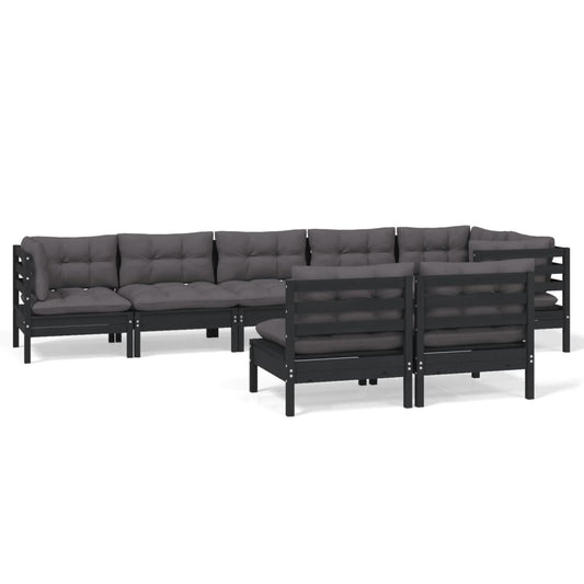 vidaXL 8-tlg. Garten-Lounge-Set mit Kissen Schwarz Massivholz Kiefer