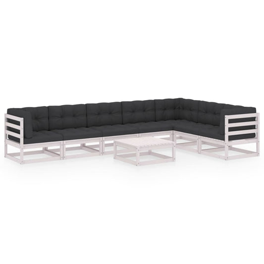 vidaXL 8-tlg. Garten-Lounge-Set mit Kissen Weiß Kiefernholz