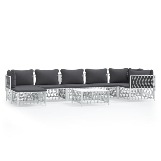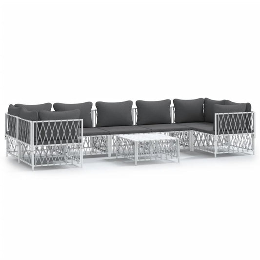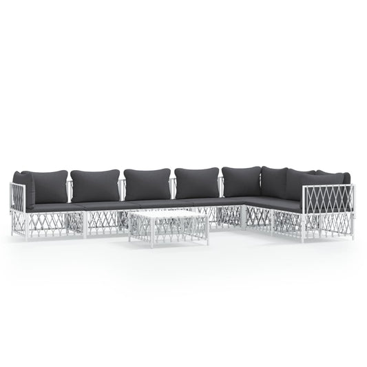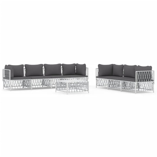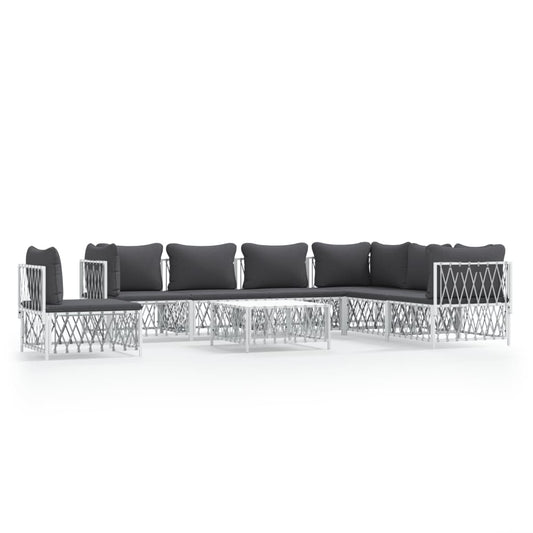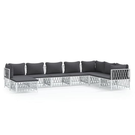 vidaXL 8-tlg. Garten-Lounge-Set mit Kissen Weiß Stahl
