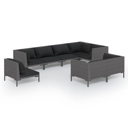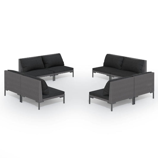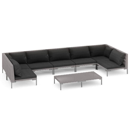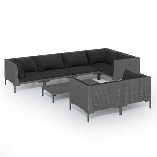 vidaXL 8-tlg. Garten-Lounge-Set mit Kissen Poly Rattan Dunkelgrau