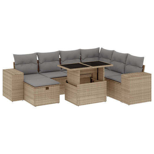 vidaXL 8-tlg. Garten-Sofagarnitur mit Kissen Beige Poly Rattan