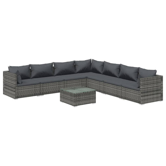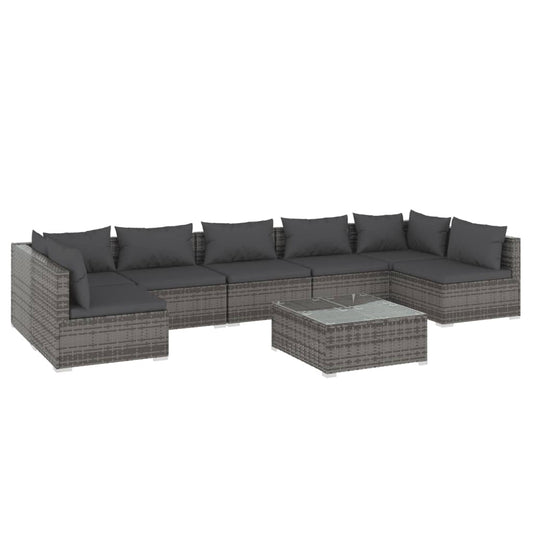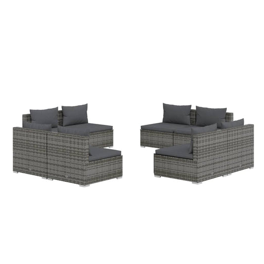 vidaXL 8-tlg. Garten-Lounge-Set mit Kissen Poly Rattan Grau