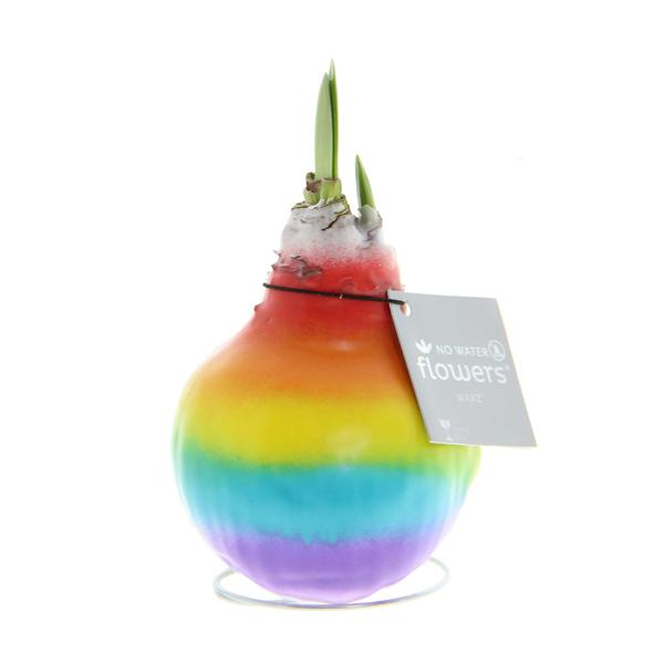 Die echten No Water Flowers® sind gewachste Amaryllis-Zwiebeln, die garantiert ohne Wasser wachsen und blühen. Die Amaryllis-Zwiebeln werden sorgfältig ausgewählt und haben genug Energie, um selbstständig zu blühen. Die bunte No Water Flowers® Rainbow bringt eine fröhliche und lebendige Note in jeden Raum. Innerhalb von 3 bis 5 Wochen wird die Zwiebel in voller Blüte stehen und Ihrem Interieur eine wunderschöne und auffällige Ergänzung bieten. Perfekt als grüner Blickfang für Ihr Zuhause und auch super als besonderes Geschenk.