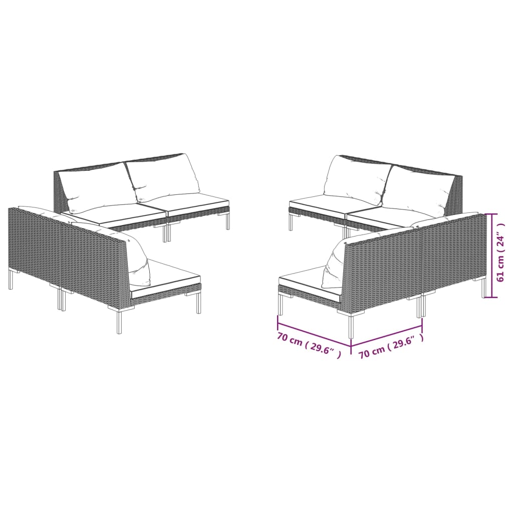 vidaXL 8-tlg. Garten-Lounge-Set mit Kissen Poly Rattan Dunkelgrau