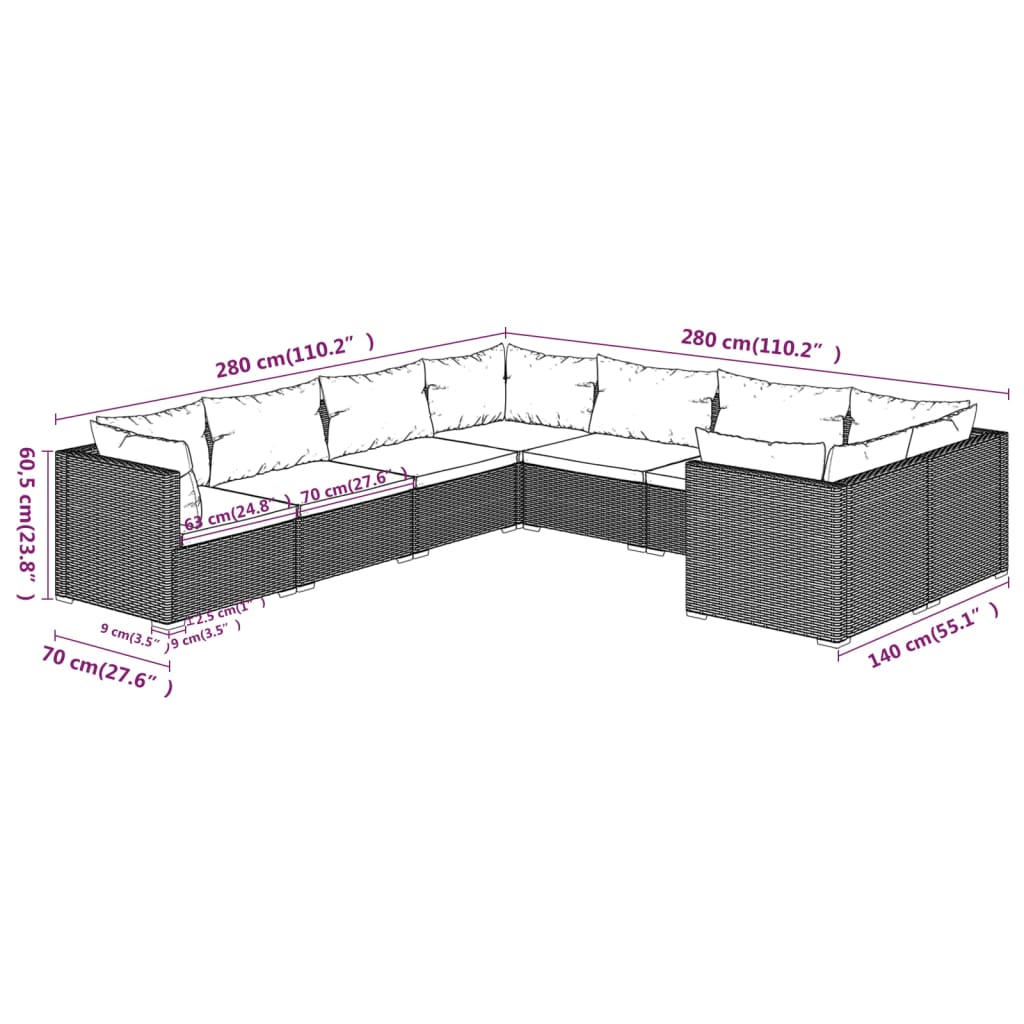 vidaXL 8-tlg. Garten-Lounge-Set mit Kissen Poly Rattan Grau
