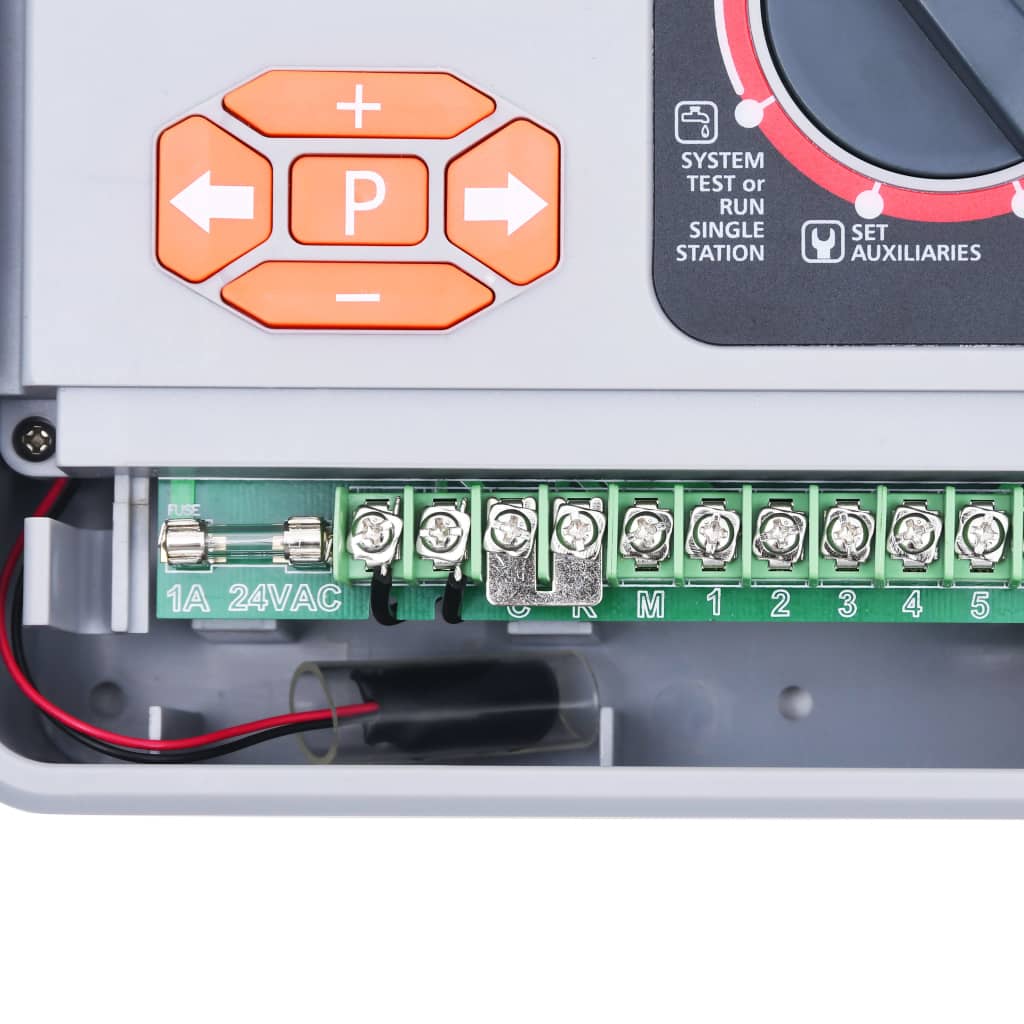 Sind Sie immer noch besorgt darüber, dass Ihre Pflanzen und Blumen nicht bewässert werden, wenn Sie in Urlaub gehen? Dann probieren doch Sie diese intelligente Bewässerungssteuerung aus, die Ihnen Zeit und Mühe erspart. Die Bewässerungssteuerung kann 4, 6, 9 oder 11 Ventile steuern. Die Bewässerungsuhr verfügt über 6 Bewässerungsprogramme und jedes Programm hat seine Startzeit, Endzeit und Laufzeit. Der Bewässerungsplan kann für jeden Tag der Woche mit einer bestimmten Anfangs- und Endzeit eingestellt werden. Die Laufzeit kann je nach Einstellung von 1 Minute bis 12 Stunden 59 Minuten betragen. Der Garten-Bewässerungsautomat wird mit Wechselstrom betrieben und lässt sich einfach mit einem Dreh- und Druckknopf zur Datenauswahl und -bestätigung bedienen. Der Anschluss eines Regensensors oder eines Feuchtigkeitssensors (nicht im Lieferumfang enthalten) ist möglich, um die Bewässerung an regnerischen Tagen oder bei zu nassem Boden zu überspringen und die Wassereinsparung zu maximieren. Eine 9-V-Alkalibatterie (nicht enthalten) wird außerdem benötigt, um die Anzeige der Digitaluhr auf dem Bildschirm und den Speicher des vorherigen Parameters aufrechtzuerhalten.